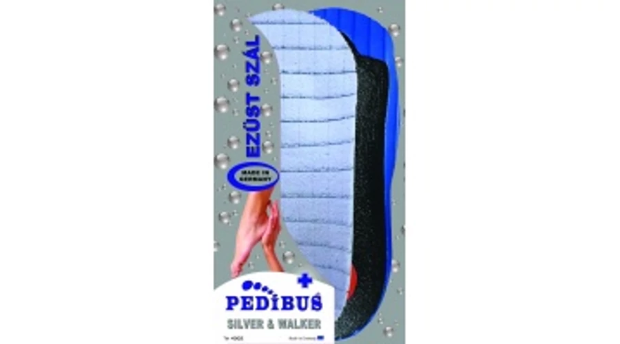 A Pedibus talpbetétek ezüst szállal szőtt frottír felsőrésze semlegesíti a baktériumok kialakulását és a nyirkosságot. Az ezüst fertőtlenítő hatása révén segít megelőzni a kellemetlen szagok kialakulását. Az aktívszenes alsórészén harántemelés, lúdtalpemelés, és az izületeket tehermentesítő sarokpárna biztosítja a helyes lábtartást, és a higiéniát minden cipőben.